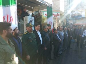 در این مراسم امام جمعه شهرستان حجتالاسلام والمسلمین زارعی با اشاره به همراه شدن ۱۳ آبان و ایام فاطمیه گفت: این همراهی فرصتی برای بازخوانی آرمان های اسلامی است چرا که روحیه طاغوت ستیزی حضرت الزهرا (س) تقابل بین حق و باطل را به نقطه پایانی خود رسانده است.